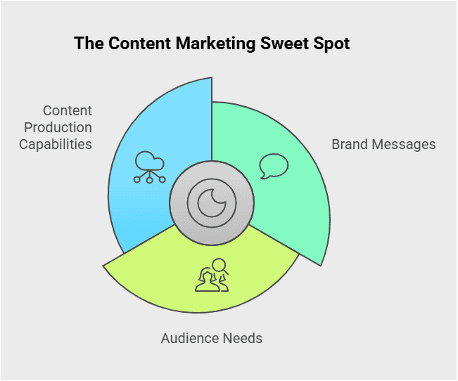 The content marketing sweet spot is where your brand messages, audience needs, and content production capabilities meet. When you can consistently produce content that resonates with your audience and creates value without stretching your resources.