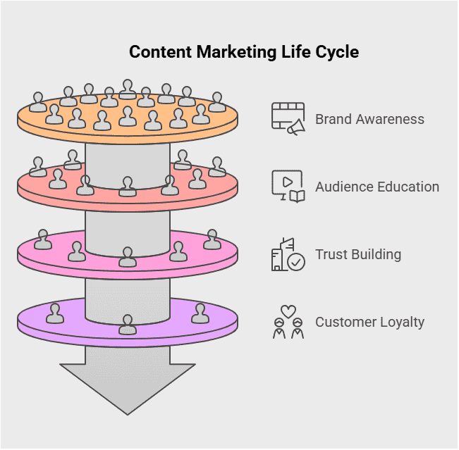 It helps people learn about your brand. It also helps them become loyal fans. It’s not about selling a product or service, it’s about engaging and educating your audience throughout their journey.